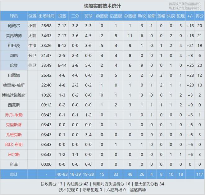 威少左脚发炎返回更衣室,本场不会回归,约老师在场边跟主帅争执起来。比赛早早失去悬念,全场结束,快船117-83大胜掘金34分!约基奇23分13板13助、穆雷23分4助。小卡21分11板6助、哈登20分6板9助、鲍威尔20分。